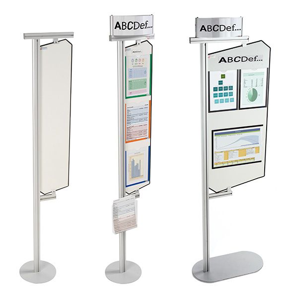 Die Lösung ist einfach: Ein Anzeigeständer. SESA SYSTEMS hat für Sie eine stilvolle Halterung entworfen, die Sie je nach Ihren Bedürfnissen mit Zubehör ergänzen können. Diese Halterung hebt Grafiken, Pläne, interne Reglementierungen oder Broschüren hervor, die Ihr Markenimage verstärken und kann Ihre Produkte, Dienstleistungen oder Anweisungen beinhalten. Je nach seiner Positionierung und aufgehängten Dokumenten kann der Anzeigeständer verschiedene Funktionen erfüllen: Zur Richtungsanzeige, als Informationsständer oder zur Verwaltungskommunikation.