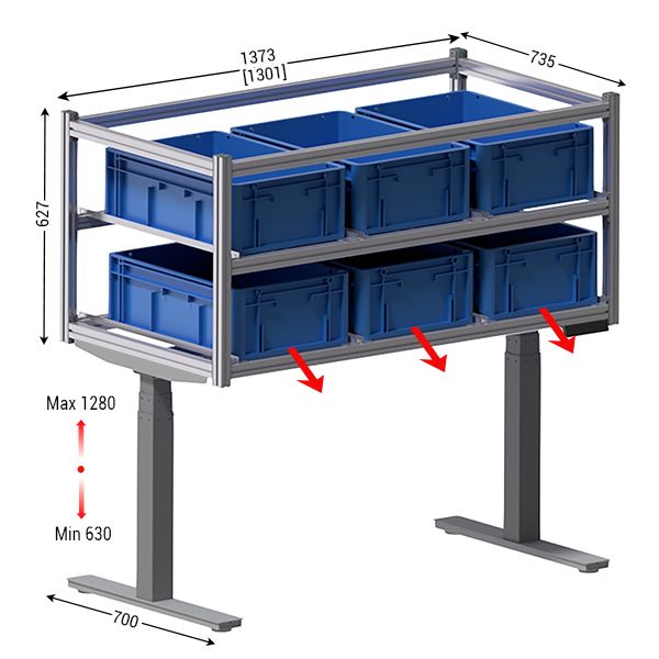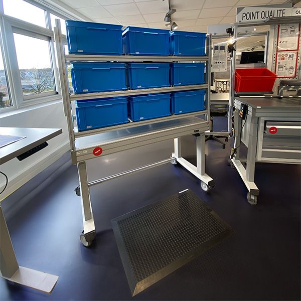Die elektrisch höhenverstellbaren mobilen Wägen ermöglichen es, auf einem konstanten Niveau zu arbeiten, um das Greifen nach Objekten zu vereinfachen und um den Komfort der Mitarbeiter zu erhöhen. Der Wagen begleitet den Arbeiter den ganzen Tag bei sämtlichen Bewegungen und Platzwechseln. Durch die Verstellbarkeit der Ablageplatte wird die Handhabung der Behälter erleichtert und bietet somit eine bequeme Greifhöhe. Die Wirbelsäule der Mitarbeiter wird weniger beansprucht, das Risiko von Muskel- und Skeletterkrankungen wird verringert. Diese Ausstattung ermöglicht es, die Arbeitsbedingungen und die Ergonomie der Mitarbeiter zu verbessern. Tatsächlich sind weniger Platzwechsel und weniger unnötige Bewegungen gleichbedeutend mit besserer Leistung und somit mit einem verbesserten Supply Chain-Fluss. Diese unterschiedlichen Vorteile sind essentiell um mehr Komfort zu bieten und die Verwendung einer guten Körperhaltung am Arbeitsplatz zu fördern.