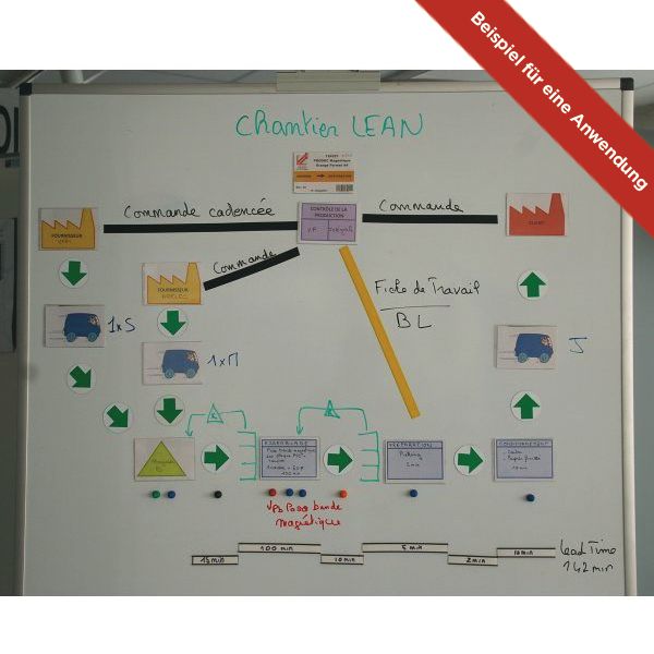 Nach Abschluss des Spiels geht es natürlich darum, sicherzustellen, dass diesesLEAN-Management Trainingsowohl für die Mitarbeiter als auch für das Unternehmen von Vorteil ist. Wenn das Spiel Sie also ermutigt, durch Recherche und durch die Anregung der Kreativität der Nutzer neue Wege zu erkunden, so ist es anschließend wichtig, die verschiedenen erlernten Prinzipien innerhalb Ihrer Struktur anzuwenden. Um Ihnen dabei zu helfen, bietet SESA SYSTEMS Eisteigersets an. Angepasst an jedes der Themen schlagen sie Anregungen in Verbindung mit den Produkten von SESA SYSTEMS vor, um die erlernte Methode dank eines Pilotprojekts konkret im Unternehmen anzuwenden. Wenn Sie die LEAN-Ausbildung mit einer anderen Abteilung in Ihrem Unternehmen erneut durchführen müssen, ist es auch möglich, die gleiche Grundausstattung beizubehalten und nur neue Betriebsfunktionen zu kaufen, um nicht erneut die komplette Ausbildung kaufen zu müssen. Dies ermöglicht es einem Maximum an Mitarbeitern, von diesem unterhaltsamen Training zu profitieren zu einem reduzierten Preis.