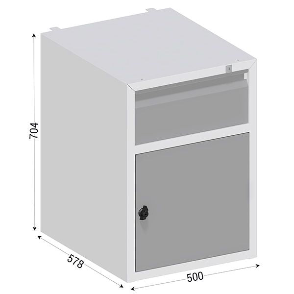 Schubladenblock H 704 x L 500 mm mit 1 Schublade H 130 mm, Tür und Schloss