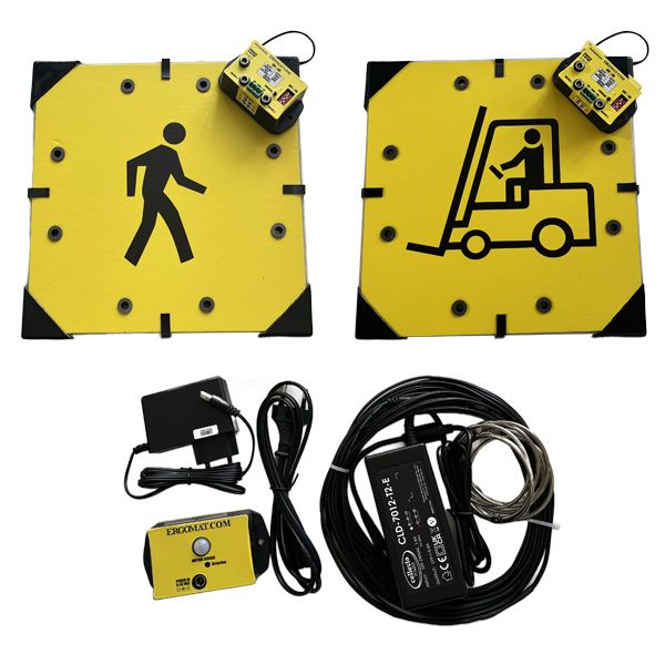 Diese LED-Tafeln geben Warnblinksignale ab, sobald Fußgänger Passagen durchlaufen, die stark von Gabelstaplern oder andere Fahrzeugen befahren werden. Die Bewegungsmelder können programmiert werden und erkennen Bewegungen auf bis zu 8 Meter Distanz. Das System erlaubt die Einstellung der Frequenz und Dauer der Blinkzeichen, um ein Maximum an Aufmerksamkeit zu erzeugen.