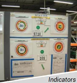 This is not reassuring nor enough information! Everyone must be able to understand what is happening in their area. The "visual management space" must contain a set of useful daily information that can be understood by everyone and, of course, it should be primarily composed of indicators. Indicators offer a simple and effective solution to keep data up-to-date, to visualize progress, to enable relevant decision making and to create a shared vision. There are quality, cost, time, motivation, safety and environmental indicators.