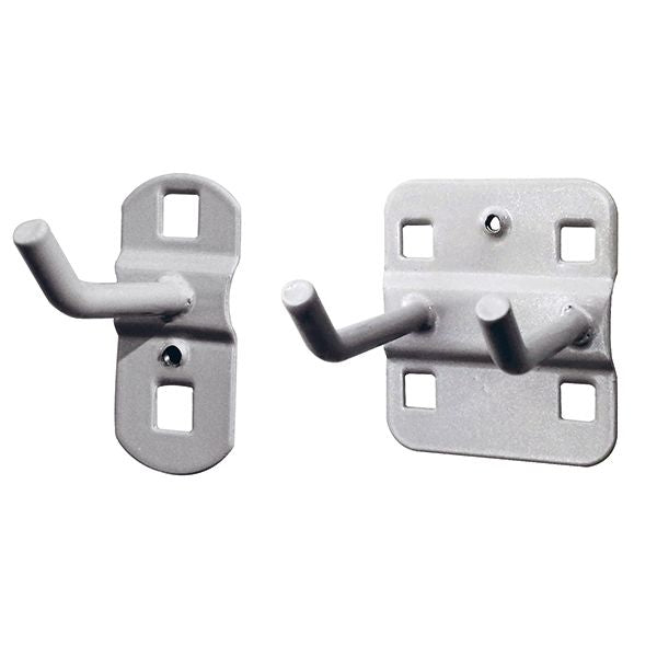 - Estos ganchos permiten el almacenamiento de diferentes herramientas en paneles perforados de pared.